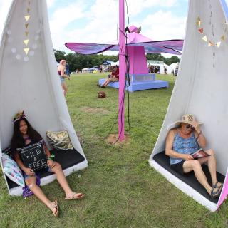 The food is delicious and locally-sourced, offering everything from wood-fired pizza to Thai noodles, vegan dishes, grass-fed burgers, seafood and burritos, all cooked right in front of you for a reasonable price. Floydfest has a great recycling and composting program, and I saw no litter on the ground. It's also very family-friendly, with lots of play areas and activities for kids, as well as organized outdoor excursions such as mountain biking, river tubing, hiking, disc-golf tournaments and yoga classes. The weather was perfect, sunny in the day and dropping into the 60s at night. And most importantly: the staff, security, vendors, musicians and attendees were incredibly friendly, considerate, polite and upbeat. Everyone was getting their positive groove on, especially T-Rex!